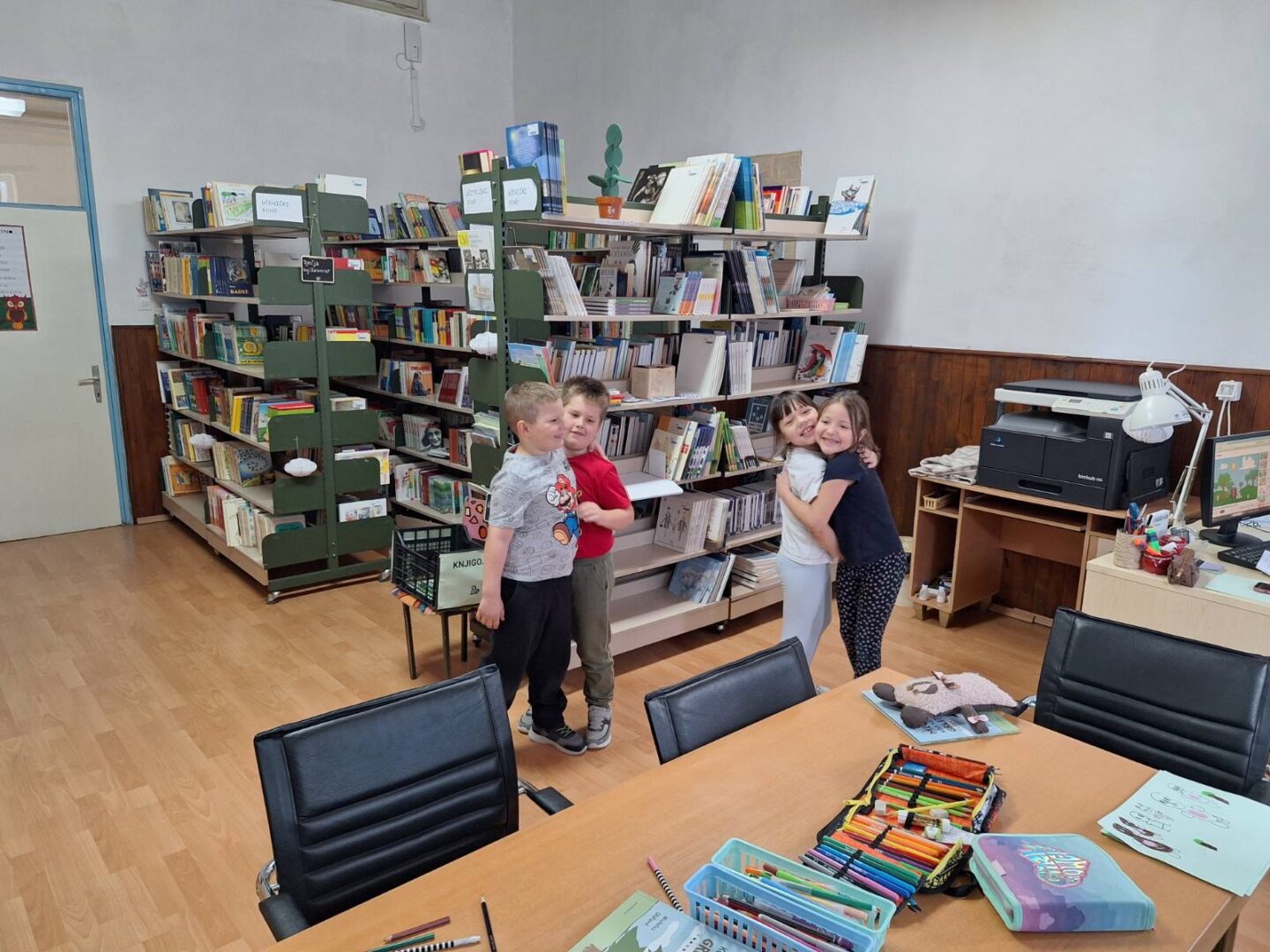 Učenici 1. razreda naše škole posjetili su školsku knjižnicu 23.1.2026. Školska knjižničarka pročitala im je lektirni naslov Medo koji voli grliti, Nicolasa Oldlanda. Simpatični medvjed koji je kroz život odlučio ići tako da grli drveće, životinje i ljude oduševio je naše najmlađe učenike. Razgovarali su o važnosti zagrljaja, ali i pravu svakoga od nas da se ne želi grliti. Opisivali su koga sve grle i ljube; odgovori su bili šaroliki od mame, tate, bake i djeda, pa čak do kućnih ljubicama.